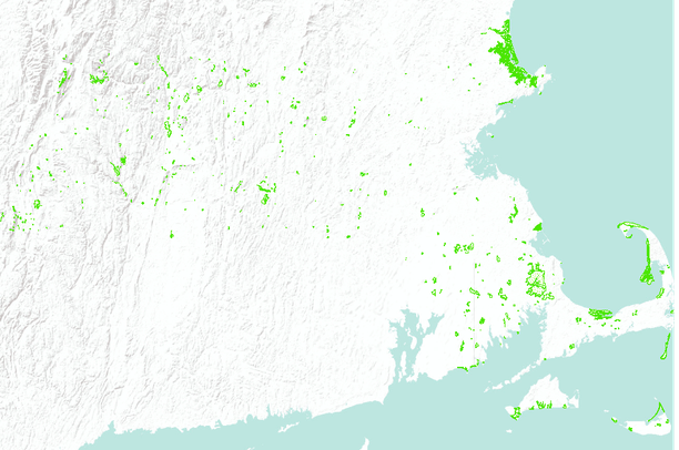 This datalayer is intended for conservation planning purposes only. It is NOT intended to be used for regulatory purposes. Other NHESP layers - Priority Habitats of Rare Species and Estimated Habitats of Wetland Wildlife - are designed for regulatory use. They are produced in the Natural Heritage Atlas, and are available from MassGIS at http://www.mass.gov/mgis/wethab.htm and http://www.mass.gov/mgis/prihab.htm.