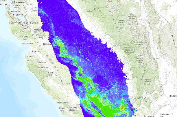 Ammospermophilus nelsoni) species distribution, completed by the Wildlight group as part of the the project Solar Energy and Conservation in the San Joaquin Valley. The Wildlight group used Maxent to generate predictions of habitat occupancy for 17 species within the greater San Joaquin Valley.