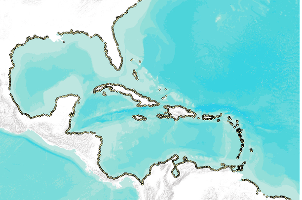 An indicator of relative sediment delivery at the river mouth for each of over 3,000 watersheds draining into the Caribbean Sea and Gulf of Mexico.