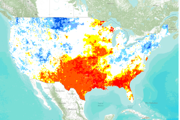 The Palmer Drought Severity Index (PDSI) is a measure of drought derived from both precipitation and temperature. Negative (i.e., dry) values of PDSI are closely associated with a high potential for wildland fire.