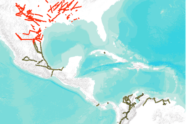 This dataset depicts all pipelines for countries bordering the Gulf of