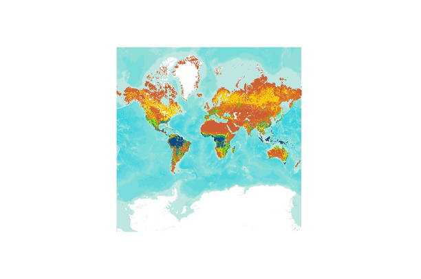map depicting vegetation carbon stocks, circa 2000, and follows the