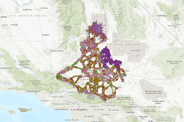 To aid in the mapping of conservation values in the West Mojave study area, we modeled structural connectivity (i.e. generic landscape pattern connectivity).