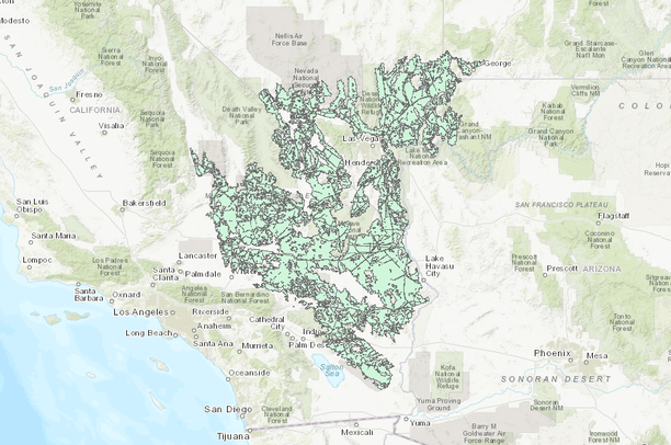 The output of this model depicts the areas of contiguous, highest value habitat for the Mojave desert tortoise. The areas of highest value are those of highest habitat potential (as modeled in Nussear et al. 2009) which are adjacent to other areas of highest habitat potential. Nussear et al. (2009) developed a model of habitat suitability for the tortoise using presence data and 12 environmental variables to predict potential areas of desert tortoise habitat throughout its geographic range at a 1km2 scale. Their analysis did not account for anthropogenic changes that may have altered habitat with relatively high potential into areas with lower potential. We therefore utilized 1) National Landcover Datasets" Impervious Surfaces layer and 2) The Nature Conservancy's "highly converted areas" (TNC Mojave Ecoregional Assessment 2010; TNC Sonoran Ecoregional Assessment 2009) to change heavily developed areas where tortoises cannot occur to zero habitat potential. The highly converted layer depicts urban, suburban and agricultural lands that have been heavily altered. Our model first finds areas with a 1.0 habitat potential probability, then iteratively adds adjacent areas with a lower potential starting with 0.9 down to 0.6. The output consists of all areas down to 0.6 that can be reached from any 1.0 area, with no unconnected "habitat islands".