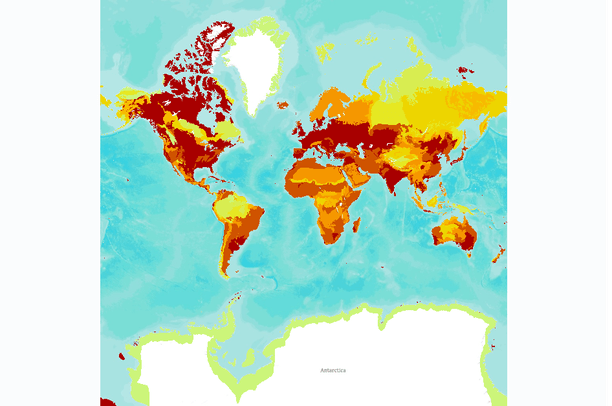 Accessibility of natural habitats to humans, by terrestrial ecoregion.