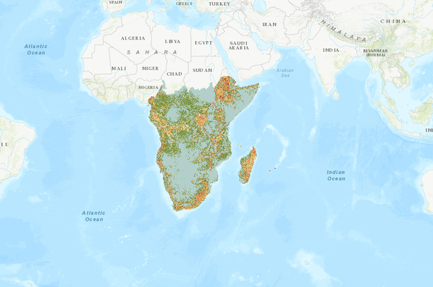 Africa terrestrial ecosystems were modeled using a biophysical stratification approach based on mapping the major structural components of ecosystems. New 90 meter base resolution continental datasets were developed for several key physical environment datalayers including coastlines, land surface forms, surficial lithology, and bioclimates. These unique physical components, considered as the fundamental building blocks of ecosystems, were reviewed by regional vegetation and landscape ecology experts and used in a classification and regression tree (CART) inductive model to map intermediate scale Africa terrestrial ecosystems.