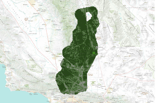 Tehachapi Study Area: High Ecological Value as determined by fuzzy logic modeling.