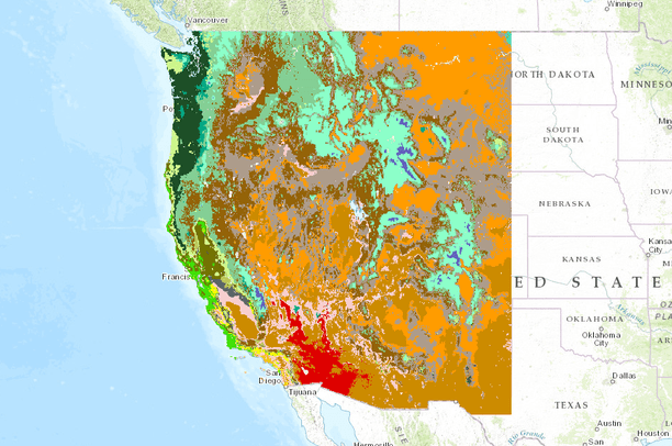 http://cmip-pcmdi.llnl.gov/cmip5/ downscaled using a fairly new statistical downscaling approach (Abatzoglou 2011), Multivariate Adaptive Constructed Analogs (MACA), over the western US. The vegetation model was run on the NASA Earth Exchange (NEX) platform at 4km resolution for 2 representative concentration pathways (RCPs) 8.5 and 4.5 (Moss et al. 2010, van Vuuren et. al 2011). Representative Concentration Pathway define a specific emissions trajectory and subsequent radiative forcing. Radiative forcing is a measure of the influence a factor has in altering the balance of incoming and outgoing energy in the Earth-atmosphere system, measured in Watts per square meter. For energy and industry CO2 emissions, RCP8.5 represents the 90th percentile of the reference emissions range rising the radiative forcing to 8.5 W/m2 in 2100. RCP 4.5 is a stabilization scenario and assumes that climate policies, in this instance the introduction of a set of global greenhouse gas emissions prices, are invoked to achieve the goal of limiting emissions, concentrations and radiative forcing. RCP 4.5 stabilizes radiative forcing at 4.5 Watts per meter squared (Wm-2, approximately 650 ppm CO2-equivalent) in the year 2100 without ever exceeding that value.