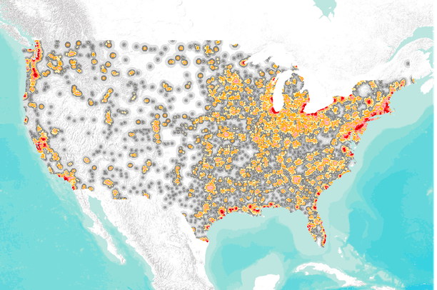 the Conterminous United States (CUS) in 1 square kilometer (km2) units