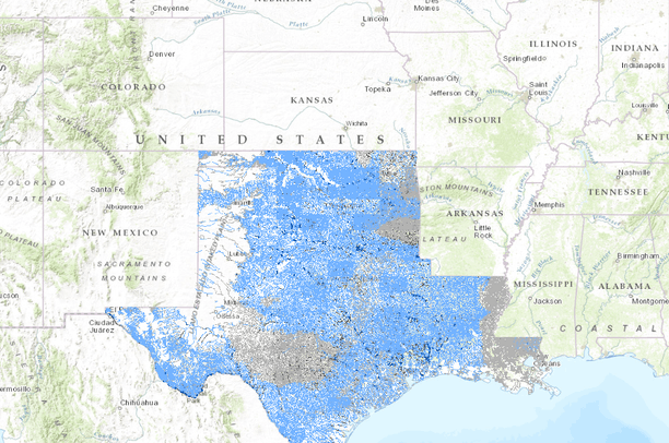 Potential Distribution of the Pelagic, broadcast spawning cyprinid fish guild in Texas, Oklahoma, and Louisiana. NHDplus segments are coded for the likelihood of cyprinid fish species that release their eggs in the river water column being present. The likelihood