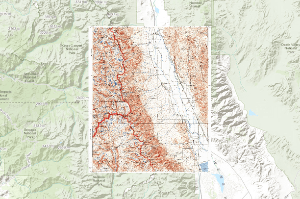 Historical topographic maps produced by the US Geological Survey (USGS) are some of the most comprehensive and detailed maps currently available to the public. These maps play an important part in preserving an area’s physical and cultural features by recording a snapshot in time. Topographic maps of the same area can show how an area looked before development and provide a detailed view of changes over time. The USGS Historical Topographic Map Explorer (http://historicalmaps.arcgis.com/usgs/) is a powerful tool for accessing maps dating back as early as the late 1800s. Topographic maps available for Owens Valley have been georeferenced and uploaded to Data Basin so they can be viewed with other data layers.