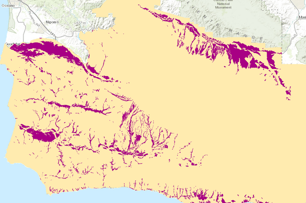This dataset is an extraction from the Soils of Santa Barbara County, showing prime agricultural soils.