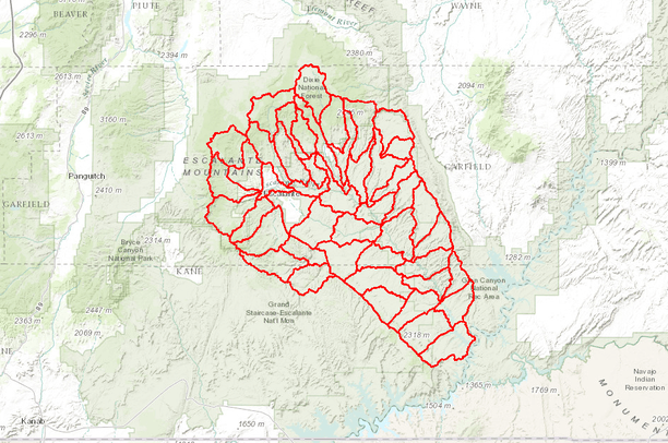 Escalante Watershed, 12-digit HUC subwatersheds, Utah