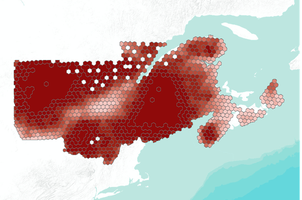 Title: Predicted Wolf Habitat in the Northern Appalachians: Current Habitat Effectiveness + Low US Mortality + Moderate Canadian Mortality Scenario Credits: Carlos Carroll,Klamath Center For Conservation Research Publication Date: 2003 Publisher: Carlos Carroll, Klamath Center For Conservation Research Other Citation Info: PDFs of the following publications are available from: http://www.klamathconservation.org/publications.html