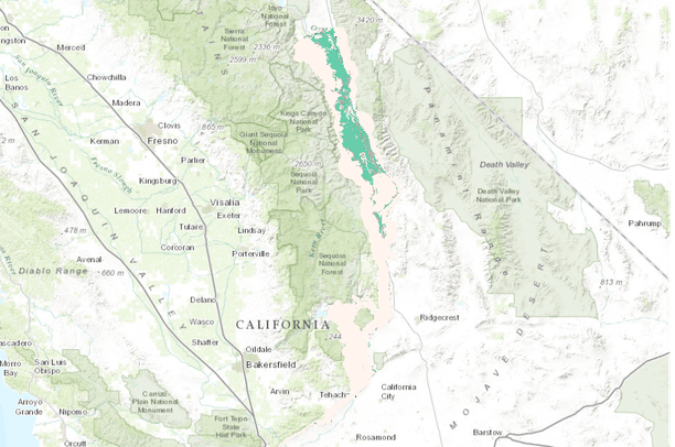 resolution with 73 detections points obtained March 2013 from CNDDB (California