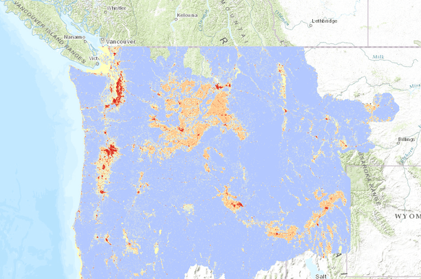 The resistance surface is the basis for the landscape permeability analysis and has a great deal of influence on the final terrestrial landscape resilience scores. As such, great pains were taken to make this dataset as reflective of actual ground condition as possible. Each dataset used was evaluated at several locations, and multiple draft versions of the resistance surface were produced until reviewers were satisfied with the data.Each cell has been assigned a value, or weighting, representing it's hardness/ impermeability to species movement and ecological flows. Higher values are more difficult to cross, while lower values are easier. Natural lands are assigned a value of 1, meaning the cost to move across the pixel is equal to the euclidean distance, allowing relatively free flow of ecological processes at that location. A full description of the development of this surface can be found in the report , "Conserving Nature's Stage: Identifying Resilient Terrestrial Landscapes in the Pacfic Northwest."
