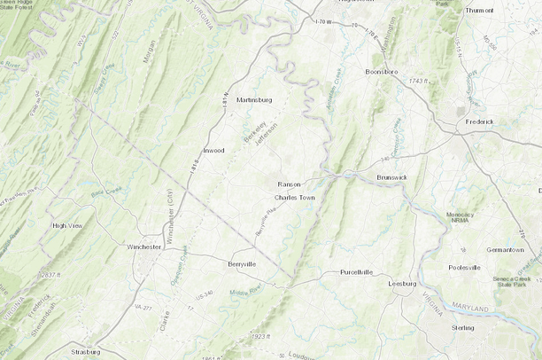 Natural (undeveloped) lands in Jefferson County, WV at least one acre in size and visible from at least one point along primary roads. Values represent the number of points along primary roads from which the area is visible.