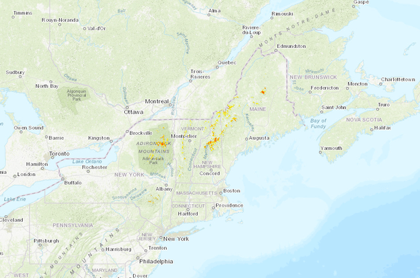 The variable displayed is Nhat and the values are the mean expected abundance for Bicknell's Thrush given the elevation, latitude and forest cover. For example, if you counted all of the thrushes on parcels with the same elevation, same latitude, and same forest canopy coverage and on average you had 0.3 thrushes per parcel, you'd have to put 100 of those parcels together to have habitat for 30 Bicknell's Thrushes.