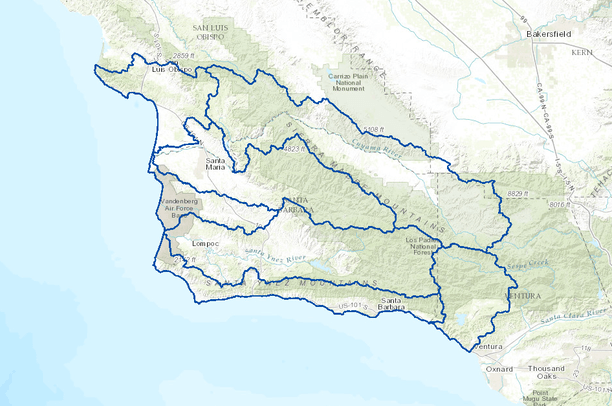 Seven Major Watershed Boundaries, Santa Barbara County, California.