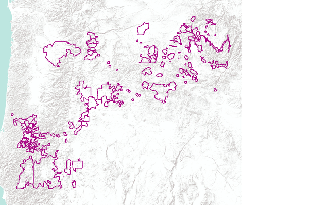 This dataset depicts wildland-urban interface areas in Oregon, as mapped