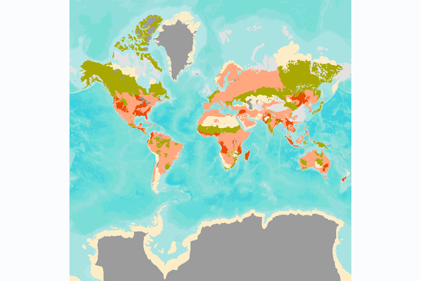 These data were displayed in a map published in The Atlas of Global Conservation (Hoekstra et al., University of California Press, 2010). More information at http://nature.org/atlas.