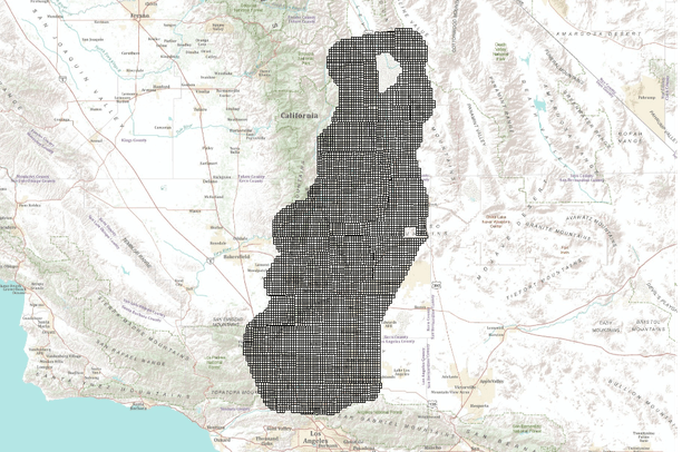 This layer has been clipped to a 12 km buffer of the Tehachapi study area.