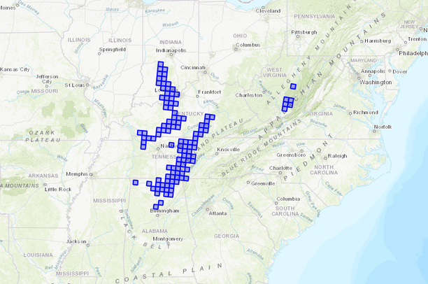We developed spatial summary (GIS) layers for a study of factors influencing the distribution of cave and karst associated fauna within the Appalachian Landscape Conservation Cooperative region, one of 22 public-private partnerships established by the United States Fish and Wildlife Service to aid in developing landscape scale solutions to conservation problems (https://lccnetwork.org/lcc/appalachian). We gathered occurrence data on cave-limited terrestrial and aquatic troglobiotic species from a variety of sources within the Appalachian LCC region covering portions of 15 states. Occurrence records were developed from the scientific literature, existing biodiversity databases, personal records of the authors, museum accessions, state Natural Heritage programs, and The Nature Conservancy (for Tennessee). Occurrence records were identified by location and translated into a GIS database. Although the precise locations cannot be made public due the sensitivity of the information, data sharing agreements, and restrictions under the Federal Cave Resources Protection Act of 1988, we summarized the data spatially using a coarse 20x20km vector grid. We used these occurence records, summarized at the 20x20km grid resolution in statistical modeling to examine physical factors predictive of cave dwelling fauna. Spatial summaries were developed for all cave dwelling species in our database where we had location coordinates for nine faunal groups (five terrestrial and four aquatic) that are common components of terrestrial and aquatic cave communities: ground beetles (Carabidae), millipedes, pseudoscorpions, spiders, and springtails for terrestrial species groups, and amphipods (Crangonyctidae and Gammaridae), isopods (Asellidae), crayfishes (Cambaridae), and fishes (Amblyopsidae) for aquatic species groups.