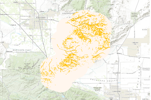 This species distribution model was produced for a limited extent within the DRECP region, defined as a union of 10 km buffers of the Tehachapi slender salamander’s CWHR range (California Department of Fish and Wildlife, Biogeographic Data Branch, 2008) and detections, at 270 m resolution with 33 detections points obtained Feb. 2013 from CNDDB (California Department of Fish and Wildlife, Biogeographic Data Branch) and Herpnet (http://www.herpnet2.org/).The model was built with the following 5 environmental predictors (provided to CBI by Frank Davis’ Biogeography Lab at UC Santa Barbara, created for the CA Energy Commission’s project “Cumulative Biological Impacts Framework for Solar Energy in the CA Desert”, 500-10-021) in order of importance: