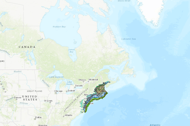 This data product was created as part of the Northwest Atlantic Marine Ecoregional Assessment. The Nature Conservancy developed this science-based ecoregional assessment for the Northwest Atlantic Marine region (Bay of Fundy to Cape Hatteras, North Carolina). This assessment synthesizes information on oceanography, chemistry, geology, biology, and social science to inform decisions about coastal and marine ecosystems. By integrating this information at a regional level, the Conservancy is able to provide both a greater understanding of the interrelated biological diversity of the marine ecoregion, and a clearer picture of the current condition of its natural areas and the challenges to their continued persistence. The ten categories of targets identified as the primary structure for the marine ecoregional assessment are: coastal and estuarine habitats, benthic habitats, diadromous fish, demersal fish, pelagic fish, forage fish, nearshore shellfish, shorebirds and seabirds, marine mammals, and sea turtles. For more information and a detailed report, please visit http://nature.org/namera/.