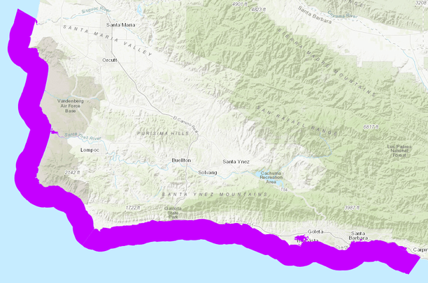 The areas expected to be permanently flooding by sea level rise in 2100. Data source: United States Geological Survey Coastal Storm Modeling System (CoSMoS). http://ourcoastourfuture.org/