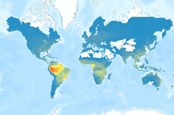 Maps of amphibian diversity include the total species richness, major taxonomic Orders (Anura, Caudata,Gymnophiona), threatened species, and small-ranged species. Species considered small-ranged are those with a geographic range size smaller than the global median (i.e., the 50% of species with the smallest ranges). Maps are based on data from the IUCN, July 2013 update.