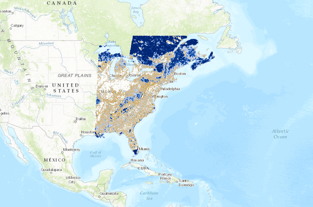 Climate Flow Zones occur in intact natural areas where high amounts of flow can spread-out and expand in many directions. These areas correspond to the least fragmented parts of the region.