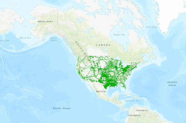 Natural gas interstate and intrastate pipelines in the United States. Based on a variety of sources with varying scales and levels of accuracy and therefore accuracy is directly affected. This layer is not visible if zoomed in beyond 1:1,000,000 scale.
