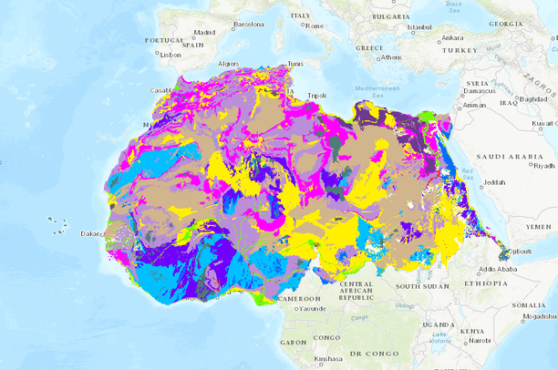 Africa terrestrial ecosystems were modeled using a biophysical stratification approach based on mapping the major structural components of ecosystems. New 90 meter base resolution continental datasets were developed for several key physical environment datalayers including coastlines, land surface forms, surficial lithology, and bioclimates. These unique physical components, considered as the fundamental building blocks of ecosystems, were reviewed by regional vegetation and landscape ecology experts and used in a classification and regression tree (CART) inductive model to map intermediate scale Africa terrestrial ecosystems.