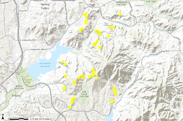 Quino checkerspot butterfly larval habitat patches San Diego NWR 2012