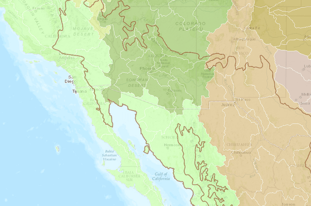 The North American Atlas – Basin Watersheds data set shows watersheds in North America at 1:10,000,000. A watershed is an area encompassing part or all of a surface drainage basin, a combination of drainage basins, or a distinct hydrologic feature. Watersheds are mapped in a hierarchical system, with the largest units encompassing the entire drainage areas of major rivers or river systems, or encompassing seaboard areas. Within these large units, subsequently smaller units encompass the drainage areas of smaller rivers and streams. Watersheds are classified differently in Canada, Mexico and the United States; the data set includes a continental classification (the North American Watershed, or NAW level), as well as the classification unique to each country. This data set was compiled from each country’s watershed file and adjustments were made to the data to resolve misalignments and mismatches across international borders.