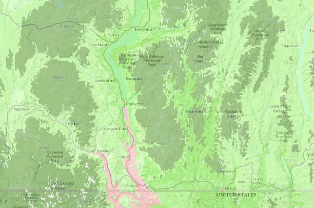 Working map for consideration by the Okanagan Ecosystems Section to review available rresources pertaining to climate change adaptation.