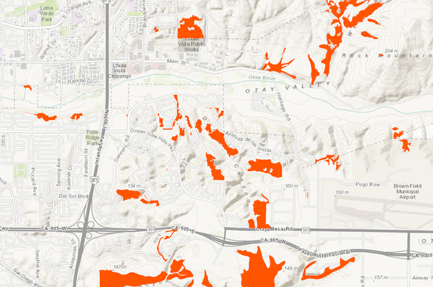 Maritime succulent scrub in the Otay Mesa region of San Diego County, CA as depicted on 2012 regional vegetation map.
