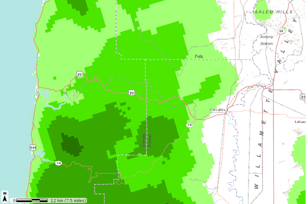 Pacific Northwest NLCD 2006 All Forest Cover (5km context)