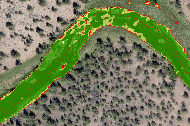The Relative Elevation Surface Model was then used to develop a Willow Planting Suitability Model, which categorizes each pixel of stream bank along the waterways as suitable, marginal, or unsuitable for willow survival, depending on the elevation of the bank relative to the water surface.