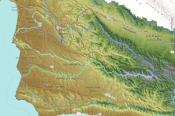 Sample map of Santa Barbara County land use, vegetation, topographic features and geology.