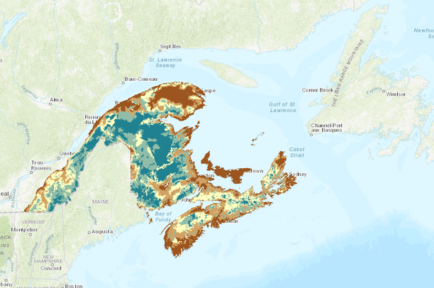 This map includes results of a number of scenarios for the conservation and management of the Canada Warbler in the Atlantic Northern Forest of Canada. We incorporated expert opinions from surveyed professionals about habitat use, dispersal distance, and minimum habitat patch size for the Canada Warbler, we used the spatial prioritization program Zonation to locate priority areas for Canada Warbler conservation and management.